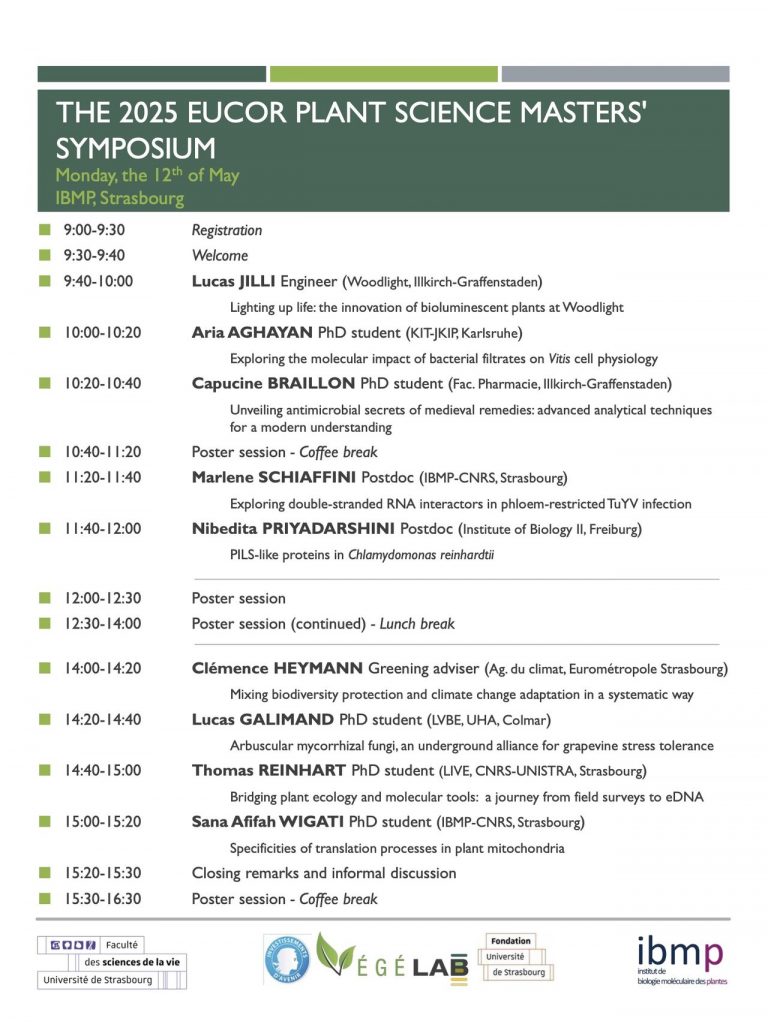 Notre thésard, Lucas GALIMAND, a effectué une présentation intitulée : « Arbuscular mycorrhizal fungi, an underground alliance for grapevine stress tolerance » dans le cadre de la journée Symposium Master EUCOR en sciences végétales.
